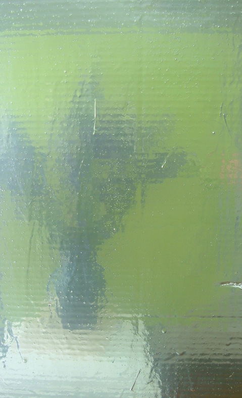 6.5 x 10.5photograph of the reflection of a vase of delphiniums on the surface of a metallic painted sheet of corrugated cardboard